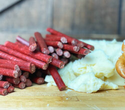 Our special blend of spicy seasonings makes this tasty twist on traditional dried beef snack sticks ideal for pairing with tangy cheeses, such as our aged cheddars or much-loved Hoppin’ Hot Habanero cheese. Our Spicy Beef Snack Sticks are perfect for holiday or game-day snack platters — or just convenient snacking at the office.