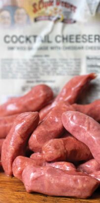 Cut each slice of bacon into thirds. Wrap 1 piece of bacon around each cocktail cheeser. Secure with a toothpick to hold the bacon in place.