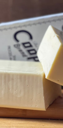 Cooper Sharp Cheese offers a distinct, tangy flavor that’s more similar to cheddar than other American cheese variations. It’s beloved throughout Pennsylvania and the Mid-Atlantic region for its sharp taste, creamy texture and superior melting properties. You can easily craft a hot turkey and bologna club sandwich by frying it and allowing the Cooper Sharp slices to melt.